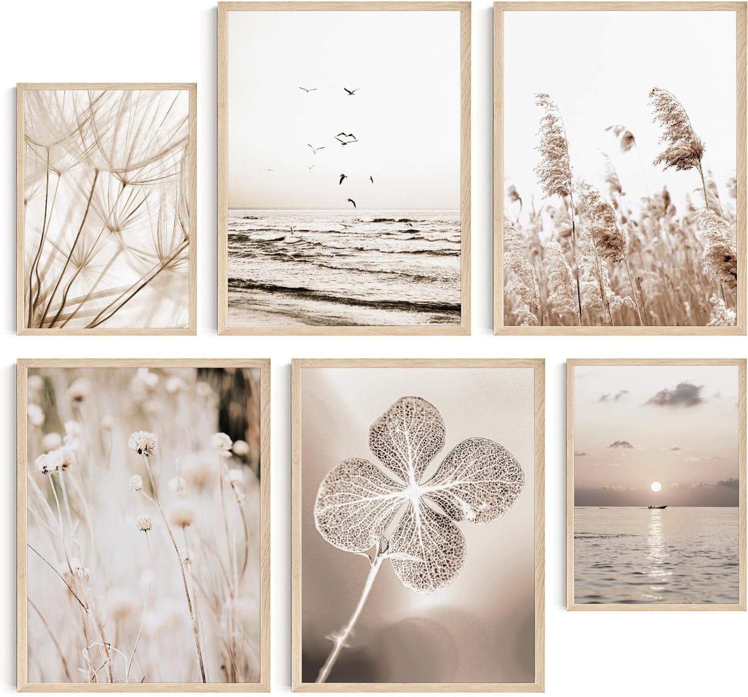Ce lot de 6 tableaux Hambient sur le thème des herbes de pampa et graminées est la solution économique pour habiller tout un mur de salon. Les tons beige, crème et naturels s'inscrivent parfaitement dans la tendance bohème chic et slow déco de 2026. À moins de 30€ les 6 pièces, c'est le meilleur rapport quantité-prix de notre sélection.
