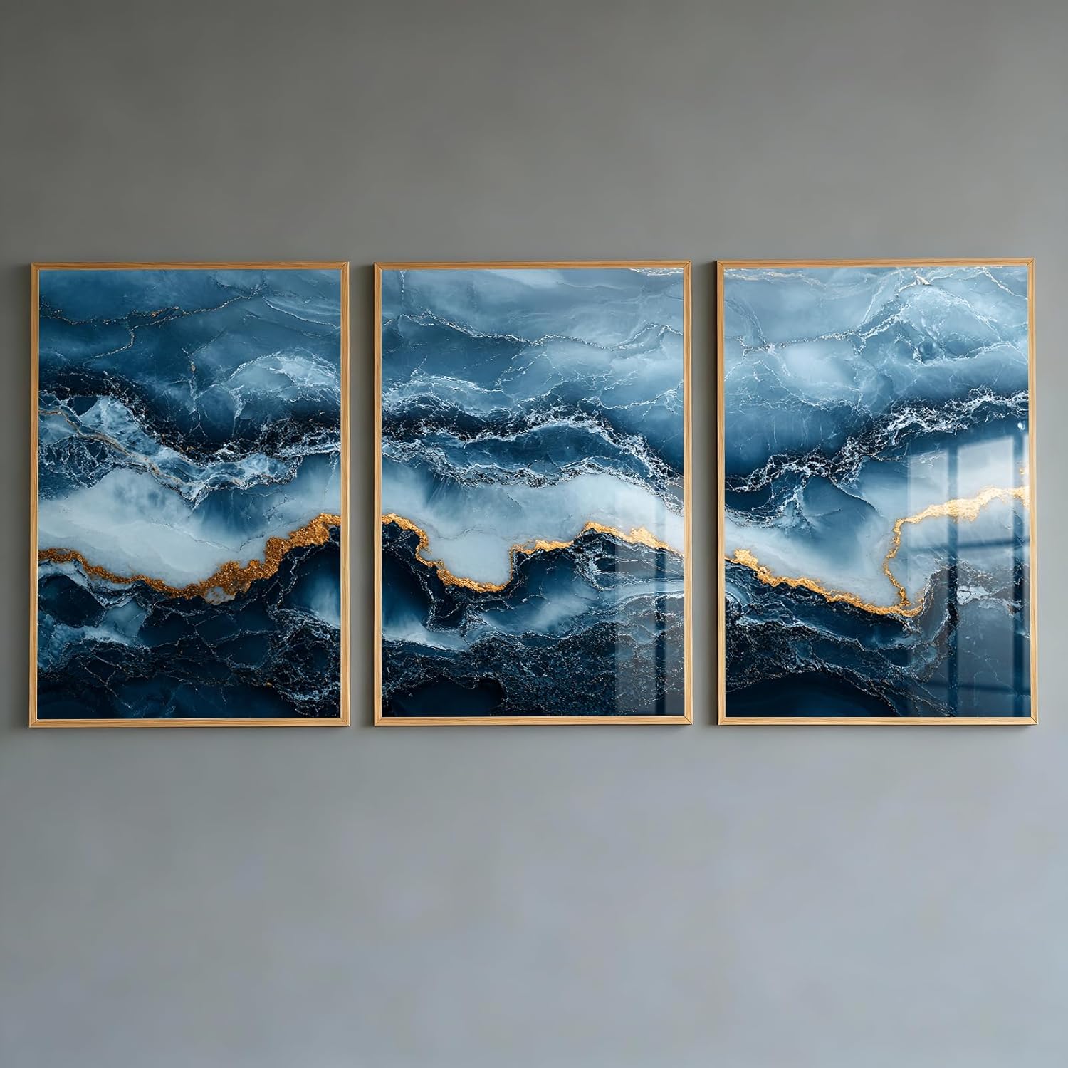 4Lot de 3 affiches murales abstraites en marbre bleu marine et doré (sans cadre, 50 x 70 cm)